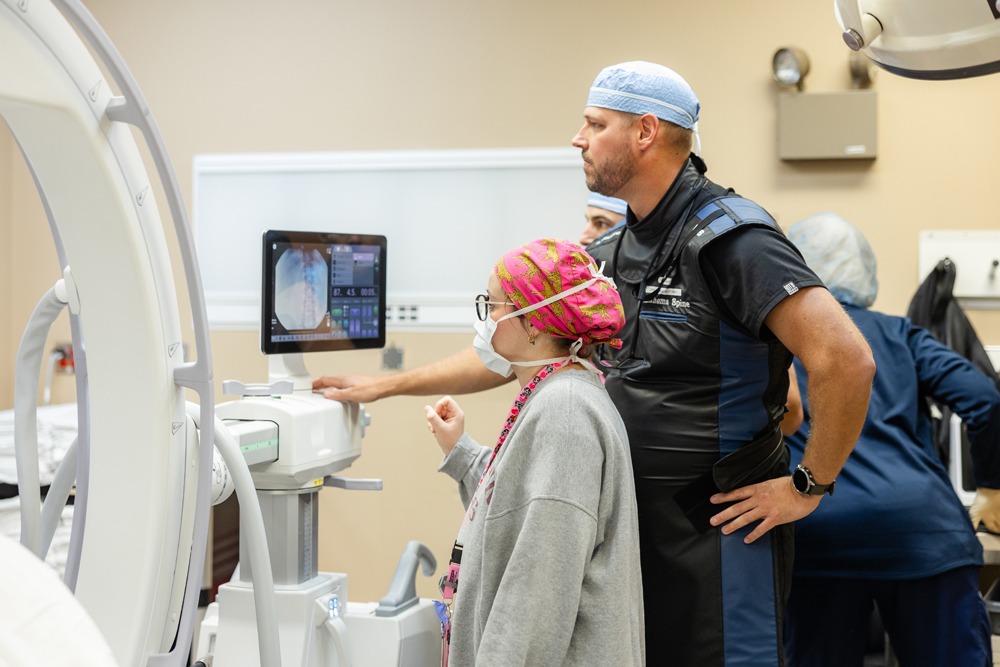 You will check into the facility at your scheduled time. You will be asked to fast for 8 hours prior to your procedure. You will be brought back and prepped by a nurse on staff. They will insert the IV to be used for your anesthesia. You will meet with the anesthesiologist and your doctor prior to the procedure. Once you’re taken to the procedure room you will be put under general anesthesia and placed in the prone position and a fluoroscopy machine will be brought into position. Your doctor will then numb the area with a local anesthetic and using live fluoroscopic guidance to perform the procedure. The whole procedure takes less than one hour for the majority of cases.